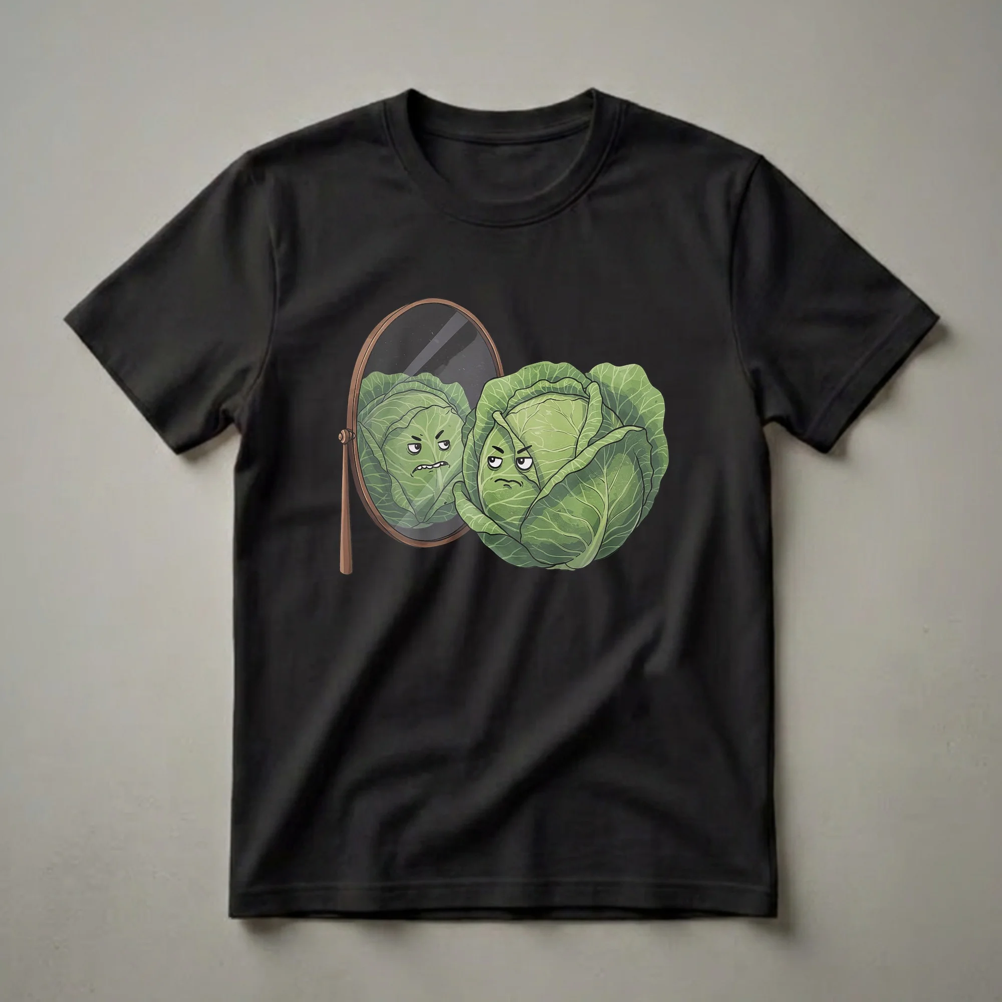Hover to zoom · tap to expand Funny Grumpy Cabbage Mirror Graphic T-Shirt for Veggie Lovers