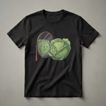 Vegetable enthusiasts who appreciate a good chuckle will reach for this unique graphic tee. The design showcases a stylized green cabbage with an undeniably grumpy face, staring into a handheld mirror. Its reflection appears just as annoyed, capturing a humorous moment of self-awareness for the humble crucifer. Cabbage, a staple in cuisines worldwide, is known for its layered leaves and versatility, from coleslaw to sauerkraut. This t-shirt humorously personifies the vegetable, suggesting an inner monologue behind its stoic, leafy exterior. It's a playful piece for anyone who enjoys food puns or quirky vegetable art. This eye-catching shirt makes a thoughtful gift for friends or family who have a great sense of humor and appreciate healthy eating with a side of fun. Wear it to your next farmers market visit or casual get-together to spark conversations and share a smile.