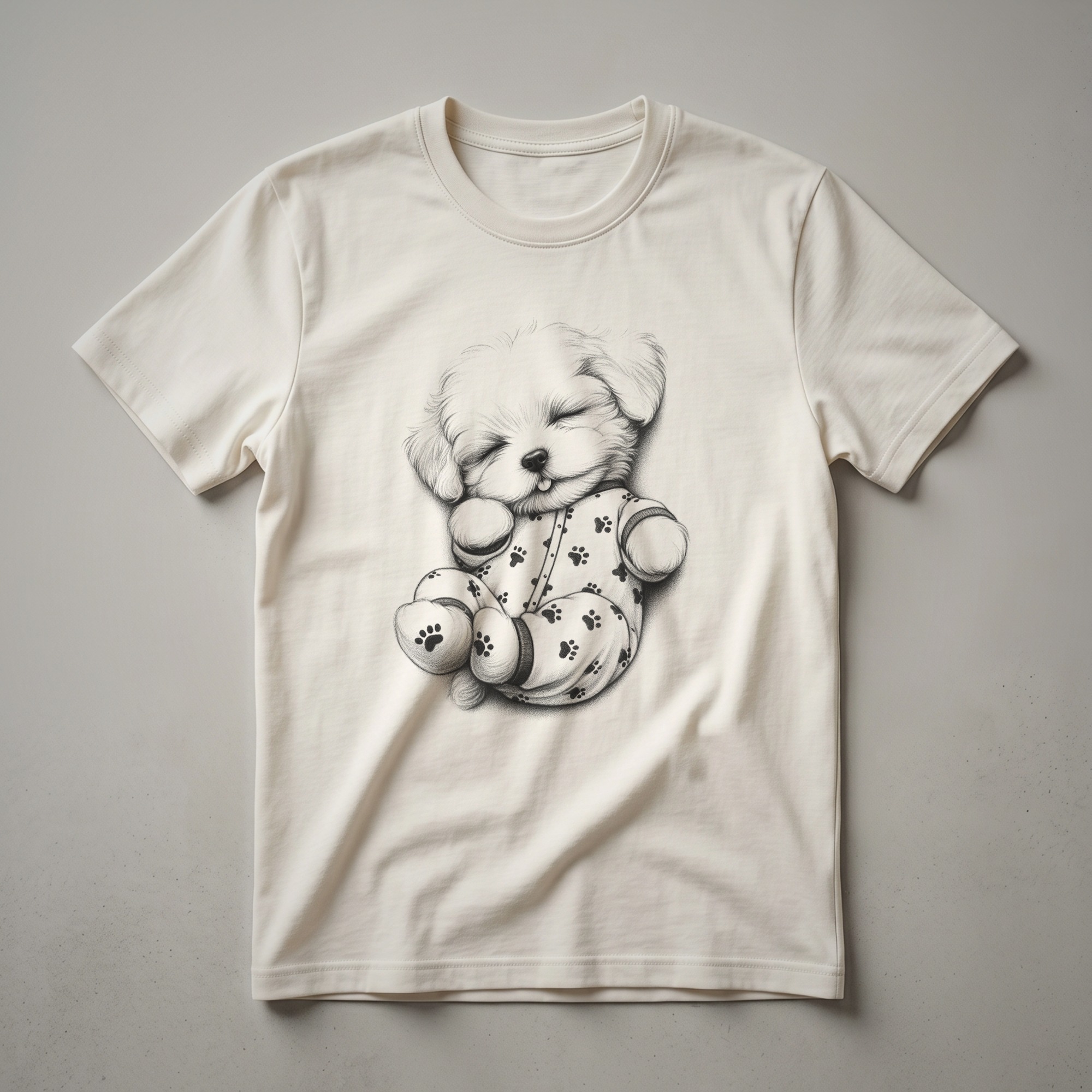 - Features a cute Maltipoo dog graphic wearing pajamas and a nightcap.