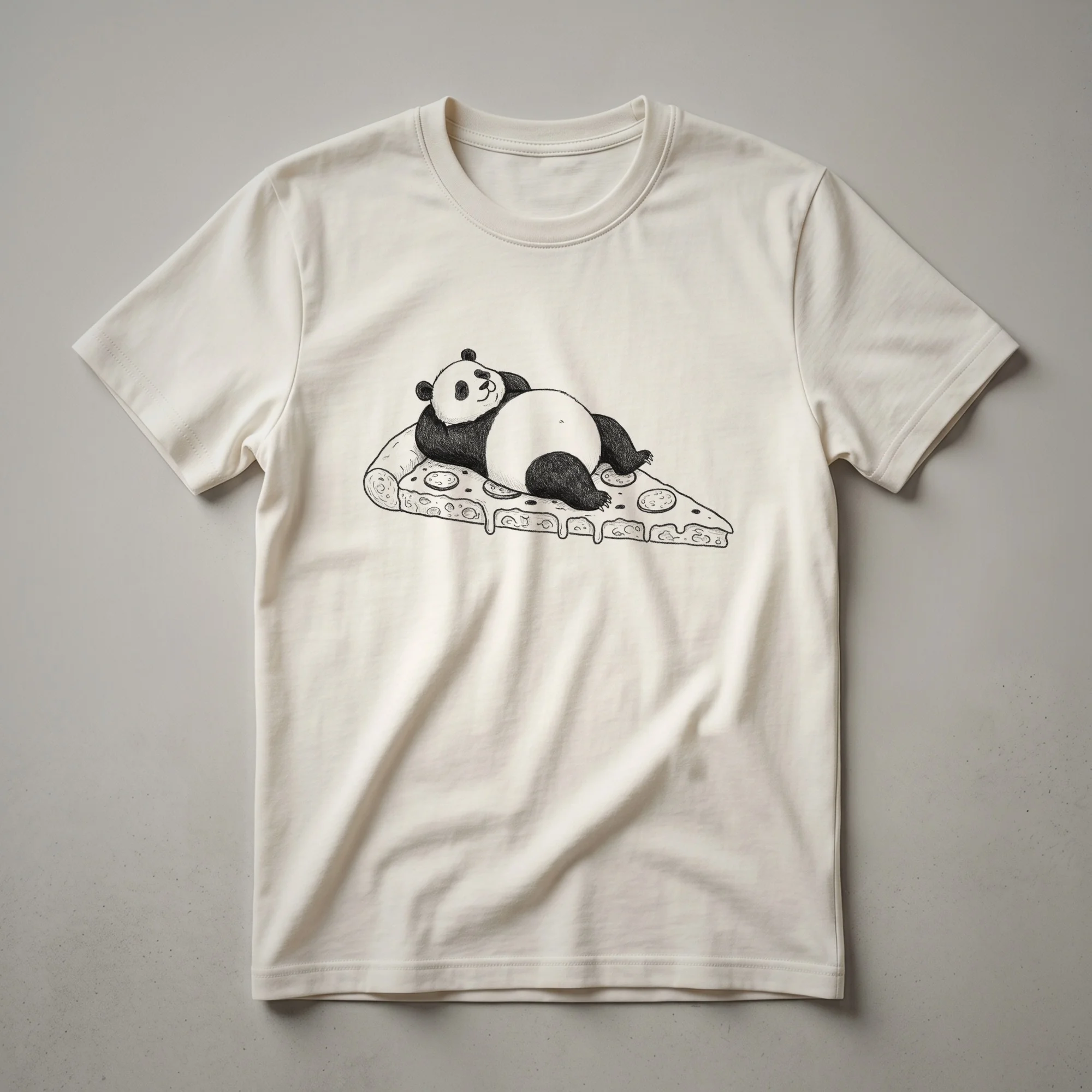 - A fun graphic tee for panda enthusiasts and pizza lovers.
