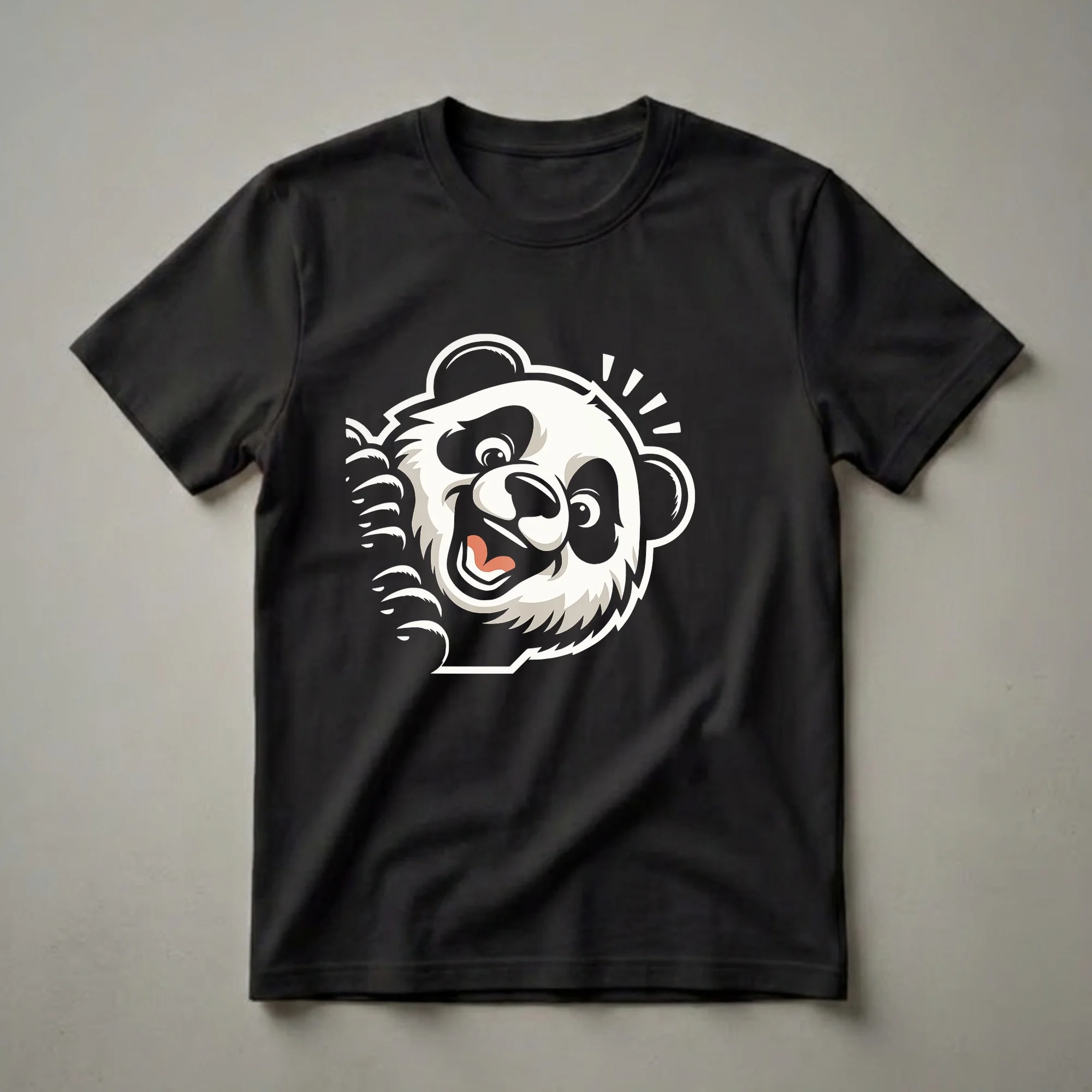 Panda lovers will reach for this eye-catching graphic tee featuring a playful panda peeking out with a wide, excited grin. The stylized artwork captures the gentle giant's charming personality, making it a standout piece for anyone who adores these iconic black and white bears. Giant pandas, native to China, are known for their distinctive black and white markings and their diet primarily consisting of bamboo. This shirt is a thoughtful gift for friends or family members who find pandas endearing and appreciate a touch of humor in their wardrobe. It's a fun way to express your personality and love for wildlife. Wear this t-shirt to casual outings, game nights, or just lounging around the house. It’s a conversation starter that’s sure to bring smiles to faces. This unique panda shirt is a staple for anyone who enjoys animal-themed apparel with a humorous twist. It’s a go-to tee for expressing your unique sense of style and your appreciation for these beloved creatures.