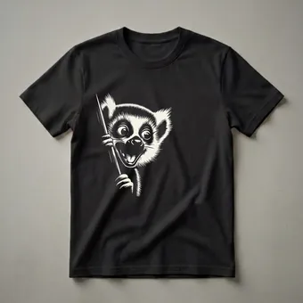 Lemurs, known for their distinctive rings and playful nature, are brought to life in this striking graphic art design. This eye-catching t-shirt showcases a lemur peeking out with a wide, comical grin and wide, expressive eyes, rendered in a bold, linocut style. The stark contrast between the cream-colored illustration and the black background gives this shirt a vintage yet modern appeal. Lemurs are native to Madagascar, where they inhabit a variety of ecosystems, from rainforests to dry forests, and are known for their social structures and unique vocalizations. This graphic tee is a fantastic way for any animal enthusiast, particularly those with a soft spot for primates, to express their personality. It makes a thoughtful gift for friends or family members who appreciate unique and humorous animal artwork. Wear this shirt to casual gatherings, game nights, or just when you want to add a touch of fun to your everyday wardrobe. It’s a conversation starter that celebrates the quirky charm of these fascinating creatures.