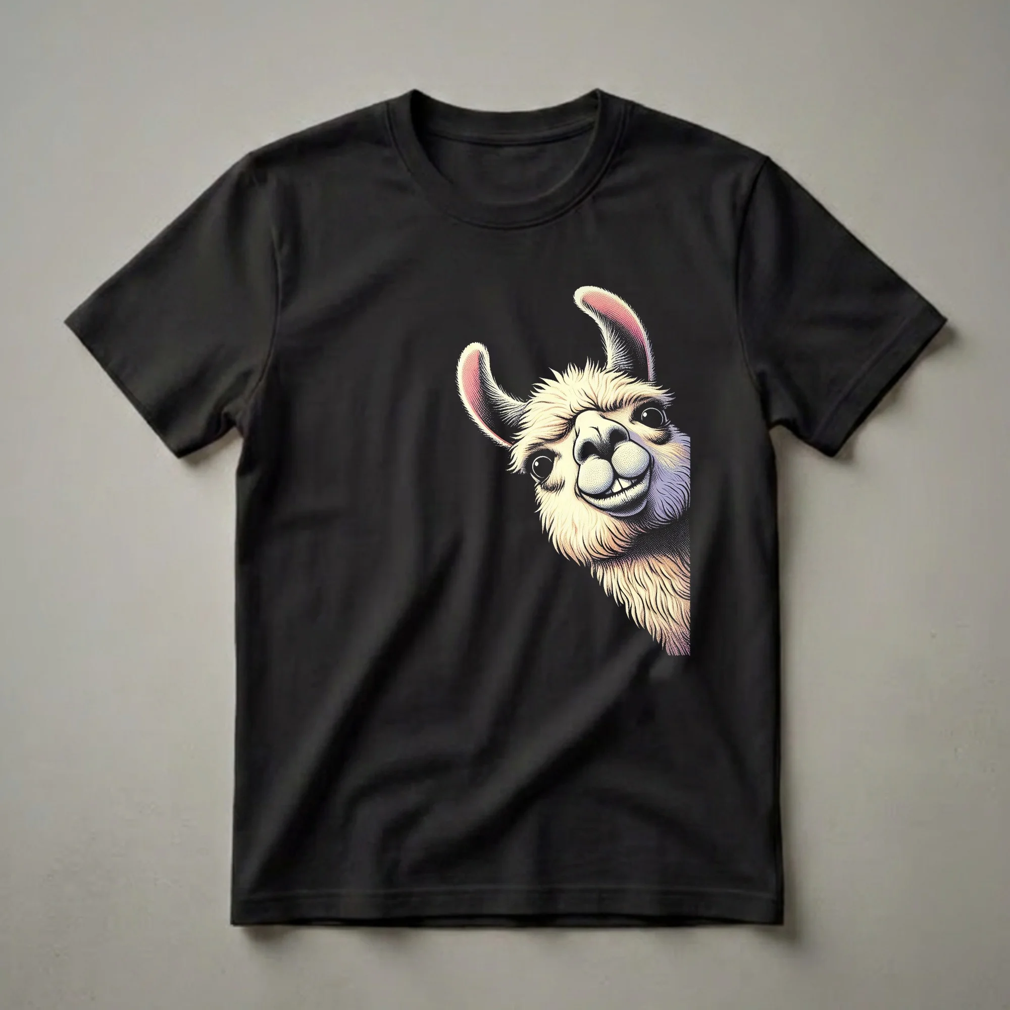 Hover to zoom · tap to expand Funny Peeking Llama Graphic T-Shirt for Kids and Animal Lovers