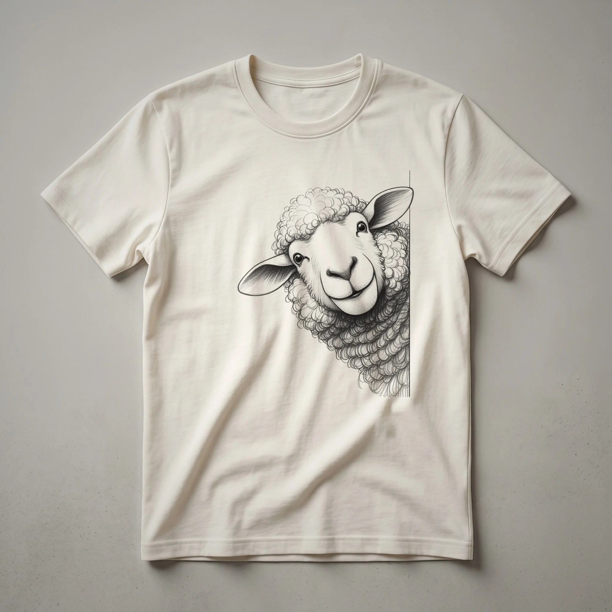 Sheep owners and fans of farm animals will reach for this playful graphic tee. The design features a single, cartoonish sheep with a curious expression, peeking up from the bottom hem of the shirt. Its woolly texture is rendered in simple, bold lines, making it an eye-catching and humorous addition to any casual wardrobe. This t-shirt is a fun way to express a love for these gentle creatures, known for their docile nature and their importance in agriculture for wool and meat production. Whether you're a farmer, a shepherd, or simply someone who appreciates a good animal joke, this shirt is sure to bring a smile. It makes a thoughtful gift for anyone who enjoys lighthearted humor and farm-themed apparel. Wear this tee to your next casual gathering, game night, or simply while relaxing at home. It’s a versatile piece that adds a touch of personality to any outfit, a thoughtful choice for those who don't take themselves too seriously and enjoy a bit of whimsy in their clothing choices. This shirt is a staple in the collection for anyone who loves a good laugh and a cute farm animal.