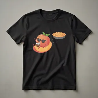 - A fun graphic tee for peach and pie lovers.