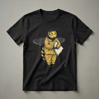 Sleepy bee enthusiasts who appreciate a good nap will reach for this eye-catching graphic tee. The design showcases a charming, anthropomorphic bee dressed in yellow pajamas adorned with a honeycomb pattern. This sleepy bee clutches a fluffy white pillow, its eyes half-closed in a clear display of exhaustion. The illustration style evokes a vintage feel, with fine line work and a limited color palette of yellow, black, and white against a stark black background. Bees, vital pollinators, are known for their industrious nature, making this depiction of a tired bee particularly humorous. This shirt works well for anyone who identifies with the struggle of waking up or simply enjoys a whimsical design. It makes a thoughtful gift for friends or family members who are always tired, love bees, or appreciate quirky apparel. Wear this t-shirt to casual gatherings, pajama parties, or simply while lounging at home, embracing your inner sleepy bee. It’s a unique piece that sparks conversation and brings a smile to faces, a thoughtful choice for those who understand the universal need for rest.
