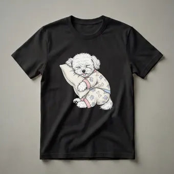 - A cozy tee for Bichon Frise lovers who appreciate their fluffy companions' bedtime charm.