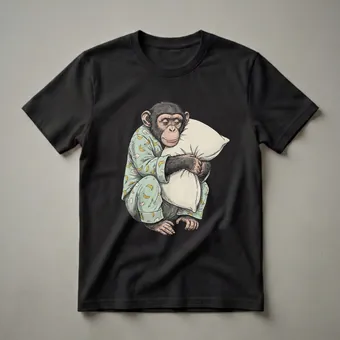 Chimpanzees, known for their intelligence and complex social structures, often exhibit behaviors that resonate with human experiences, like the desire for rest. This eye-catching graphic tee captures that relatable feeling of needing a good night's sleep, or perhaps just a lazy morning. The design features a chimpanzee dressed in light blue pajamas adorned with a playful pattern of yellow bananas and fluffy white clouds. The primate is depicted in a relaxed, almost slumped posture, clutching a soft pillow, its eyes gently closed, conveying a universal sense of drowsiness. This shirt is a thoughtful gift for anyone who appreciates a good laugh and understands the struggle of waking up, especially for those who love primates or find humor in everyday situations. It's a go-to tee for casual wear, lounging at home, or even as actual sleepwear. The detailed illustration style adds a unique artistic touch, making this more than just a novelty item; it's a conversation starter for animal lovers and those who enjoy a bit of whimsy in their wardrobe. Whether you're a student pulling an all-nighter or a parent needing a moment of peace, this chimpanzee tee speaks to the universal need for comfort and a bit of downtime. It makes a thoughtful gift for friends or family members who share a love for animals and a good sense of humor.