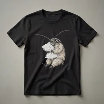 - Humorous graphic tee featuring a sleepy cockroach in pajamas, a unique design for bug lovers.