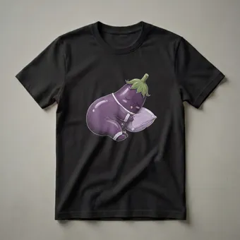 Veggie lovers who appreciate a good laugh will adore this graphic tee featuring a charmingly sleepy eggplant. This adorable illustration showcases a plump, purple eggplant dressed in striped pajamas, complete with a button-up top and cuffed sleeves and ankles. It's nestled comfortably on a soft, lavender pillow, eyes closed with a tiny tongue peeking out, embodying pure relaxation. The eggplant's stem and leaves are a vibrant green, adding a touch of freshness to the whimsical design. Eggplants, scientifically known as Solanum melongena, are native to the Indian subcontinent and are a versatile ingredient in cuisines worldwide, from ratatouille to moussaka. This t-shirt is a playful nod to the humble vegetable, transforming it into a cozy character ready for bedtime. It's a staple in the collection for anyone who enjoys a bit of humor with their food. This tee works well for those who love cooking, gardening, or simply enjoy a cozy night in. It makes a thoughtful gift for friends, family, or anyone who finds joy in the simple pleasures of life, like a good night's sleep. Wear it to your next casual gathering or simply lounge around the house in comfort.