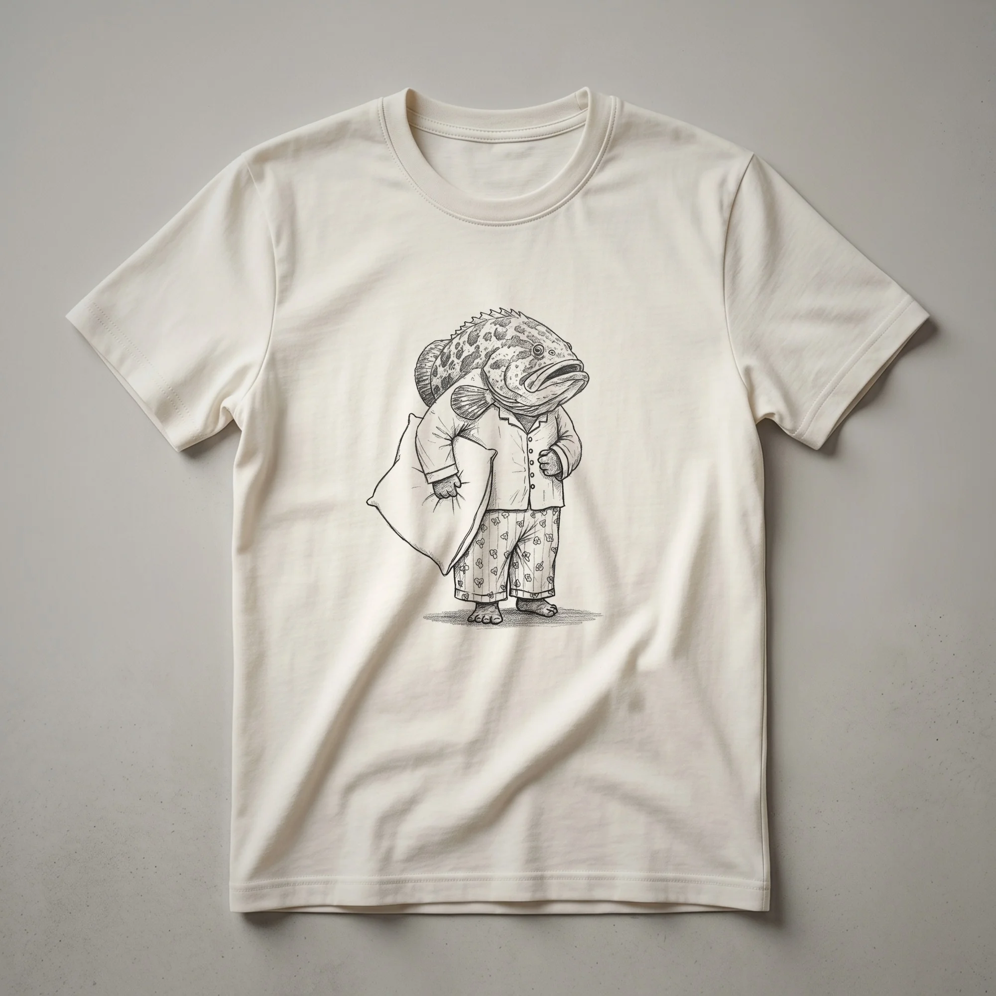 Hover to zoom · tap to expand Funny Sleepy Goliath Grouper Fish Drawing T-Shirt for Ocean Lovers