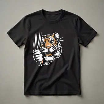 Tiger moms and dads who appreciate a bit of playful mischief will reach for this eye-catching graphic tee. The design features a stylized tiger face with wide eyes and an open mouth, peeking out from behind bold, vertical white stripes that mimic bamboo or tall grass. This striking visual captures a moment of surprise or playful pounce, making it a humorous statement piece. Tigers, known for their solitary nature and impressive hunting prowess, are apex predators found in diverse habitats across Asia, from the Siberian taiga to the mangrove swamps of Sundarbans. This shirt is a fun way to express a love for these magnificent creatures and their wild spirit. It’s a great conversation starter and makes a thoughtful gift for anyone who enjoys animal-themed humor or has a bold personality. Wear this unique t-shirt to casual outings, game nights, or just lounging at home to bring a smile to everyone's face.
