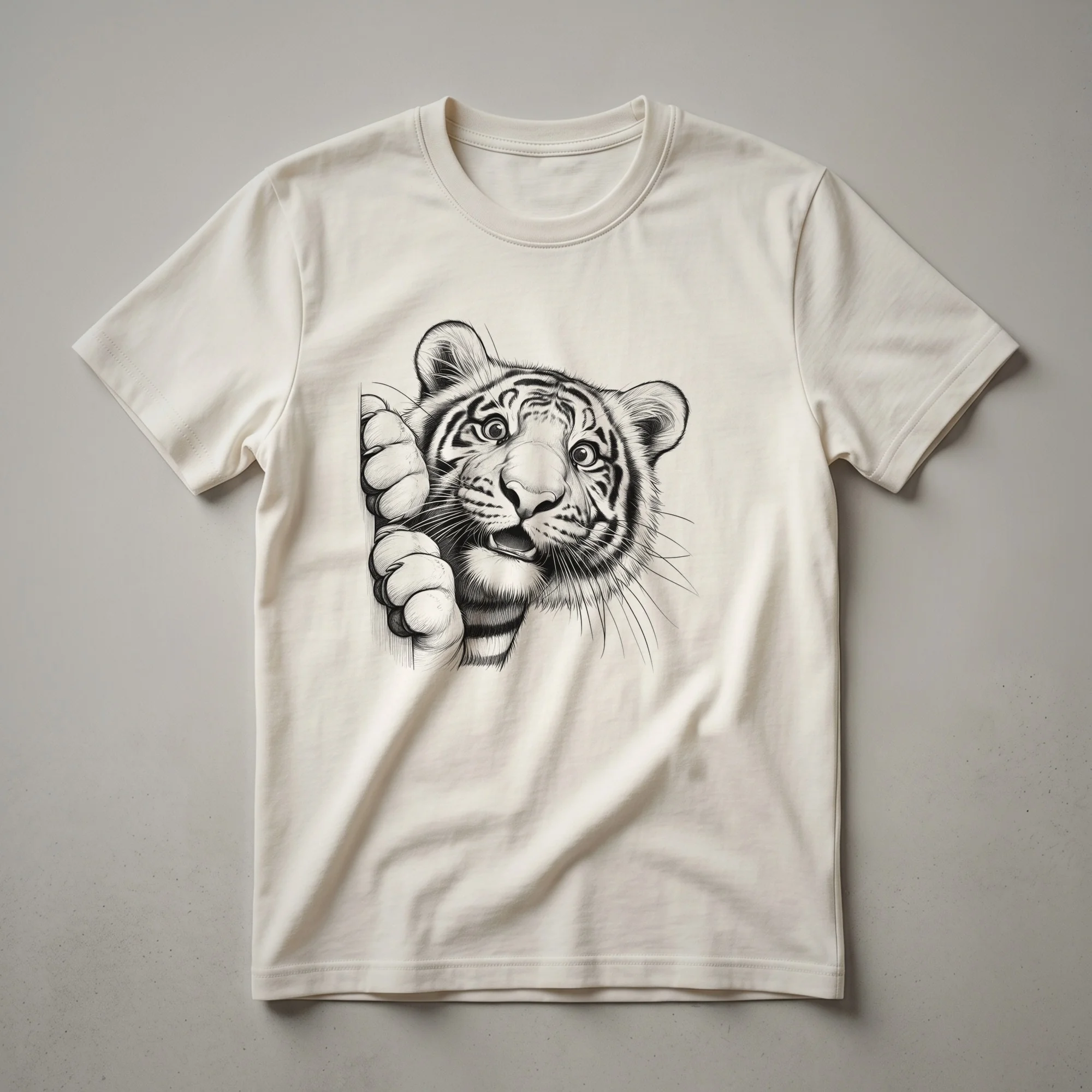 - A humorous tiger peeking graphic t-shirt for animal lovers.