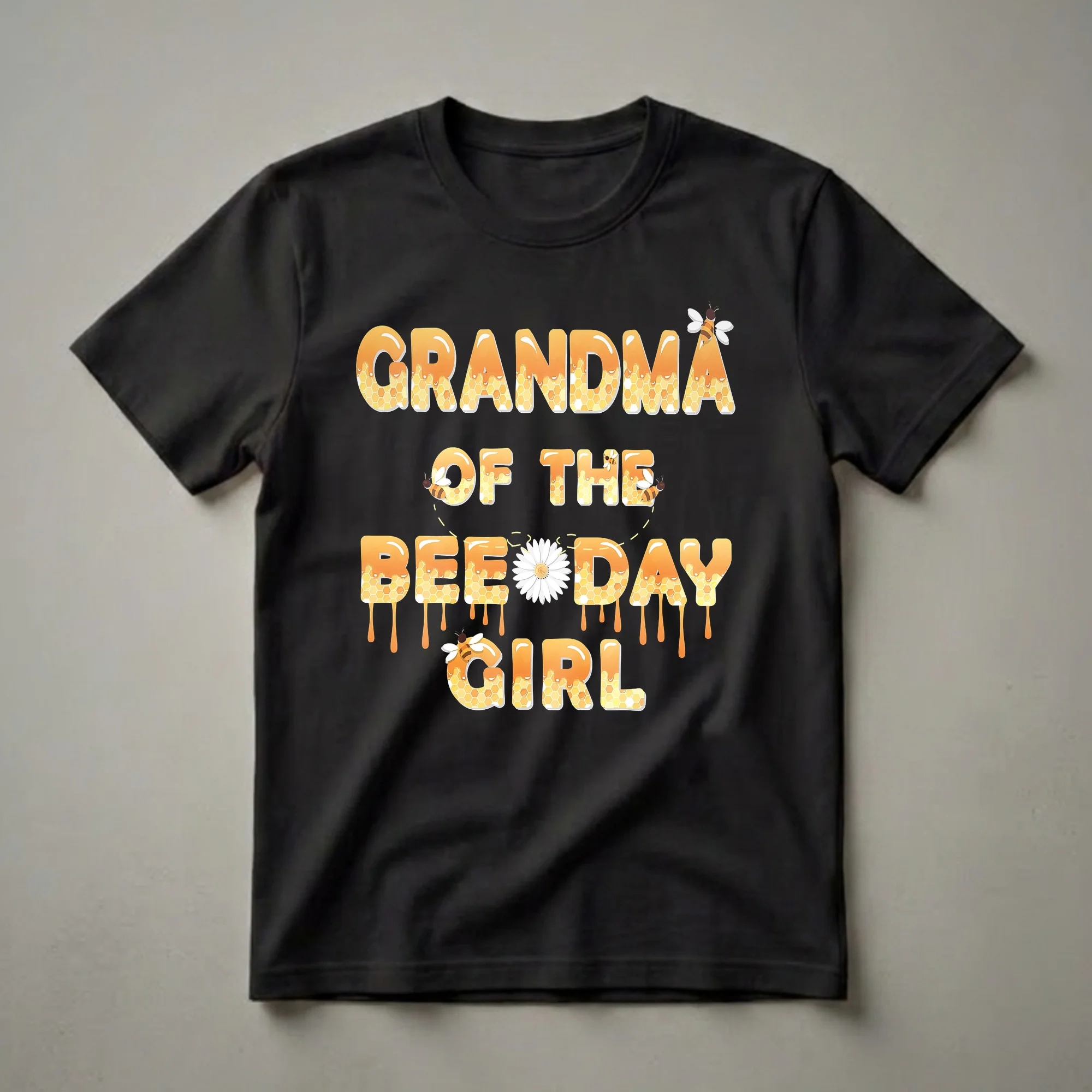 - Grandma Of The Bee Day Girl graphic tee for grandmothers.