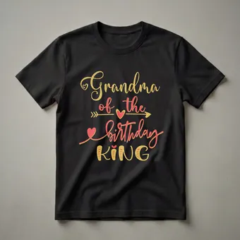 - Grandma of The Birthday King graphic tee for proud grandmothers.