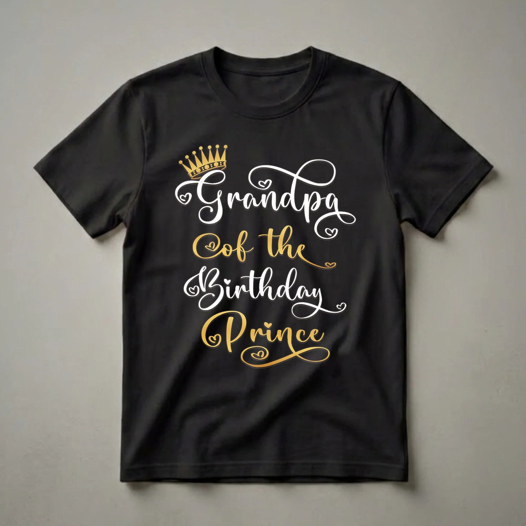 - Features a golden crown and elegant script text announcing 'Grandpa Of The Birthday Prince'.