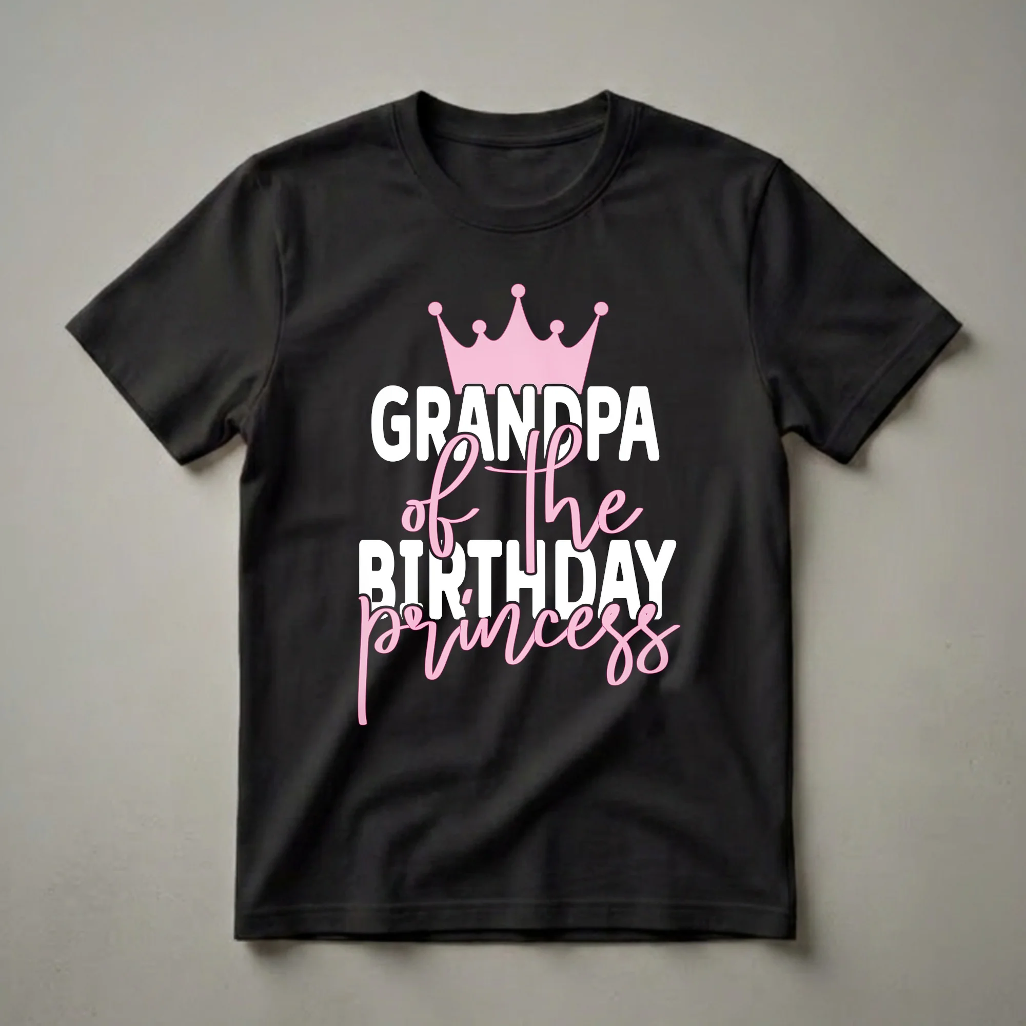 - Grandpa of the Birthday Princess graphic tee for grandfathers.