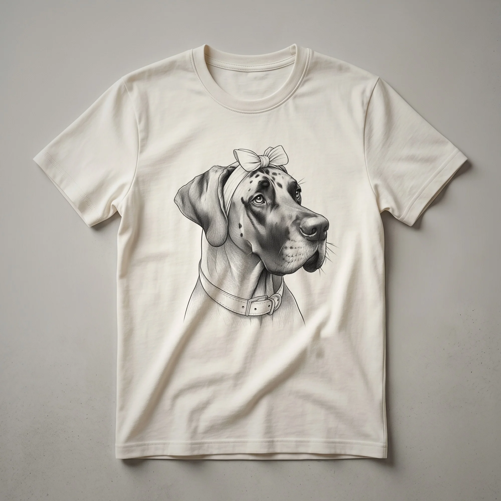 Great Dane moms know the gentle giants they share their lives with possess a regal presence and a surprisingly sweet disposition. This eye-catching graphic tee celebrates that unique bond, featuring a silhouette of a Great Dane artfully filled with a vibrant floral pattern. The design is rendered in a way that highlights the breed's distinctive stature and elegant lines, making it a striking statement piece for any dog enthusiast. Great Danes, known for their impressive size and friendly nature, are often considered the 'Apollo of dogs.' This shirt is a wonderful way for a Great Dane mom to express her pride and affection for her canine companion. It makes a thoughtful gift for birthdays, holidays, or just because for the woman who cherishes her large, loving dog. This comfortable t-shirt is a go-to choice for casual outings, walks in the park, or relaxing at home with her furry friend, showcasing her passion for her breed.