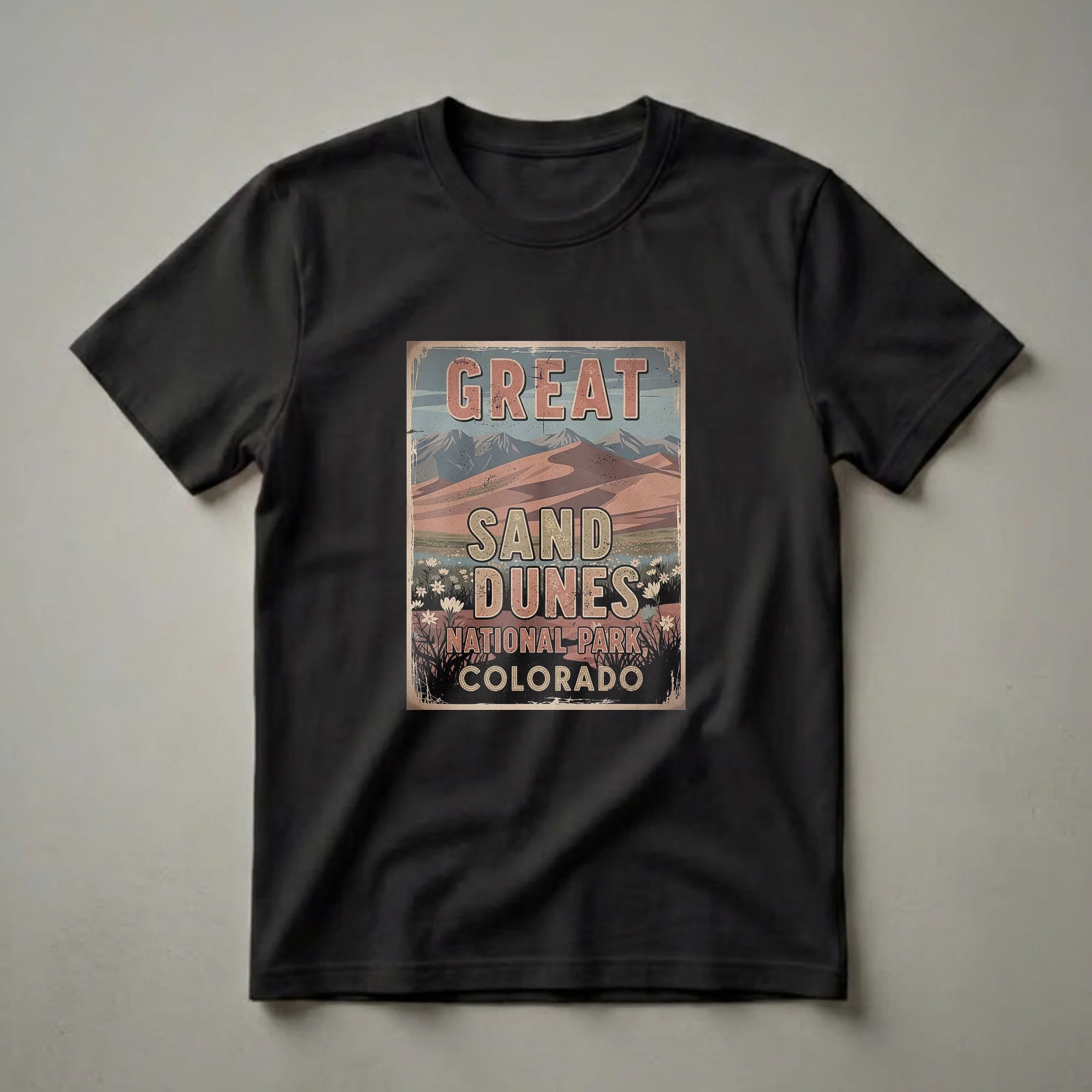 - Retro graphic t-shirt featuring the Great Sand Dunes National Park.