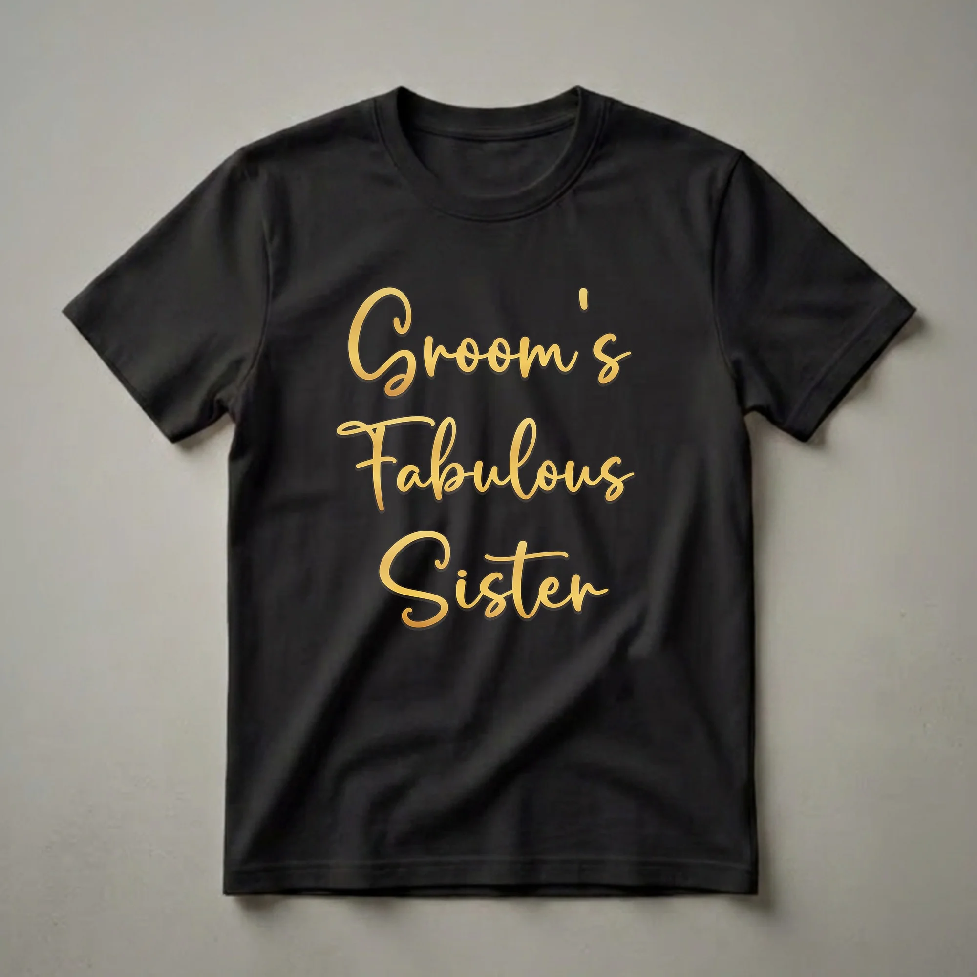 - Let everyone know you're the groom's fabulous sister with this elegant gold script tee.