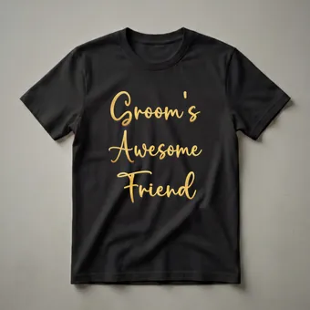 - Feature elegant gold script that reads "Groom's Friend" on a classic black tee.