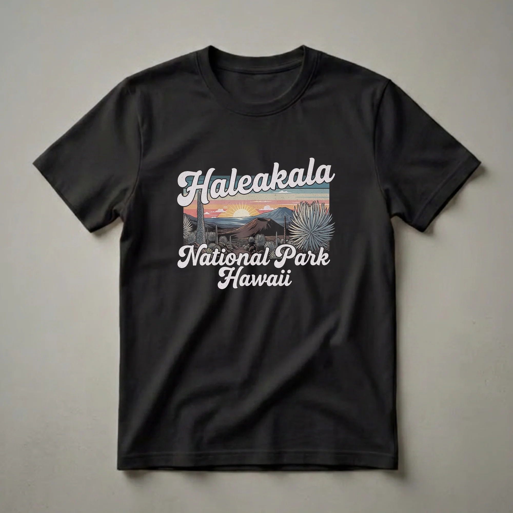 - Retro graphic t-shirt celebrating Haleakala National Park, Hawaii.