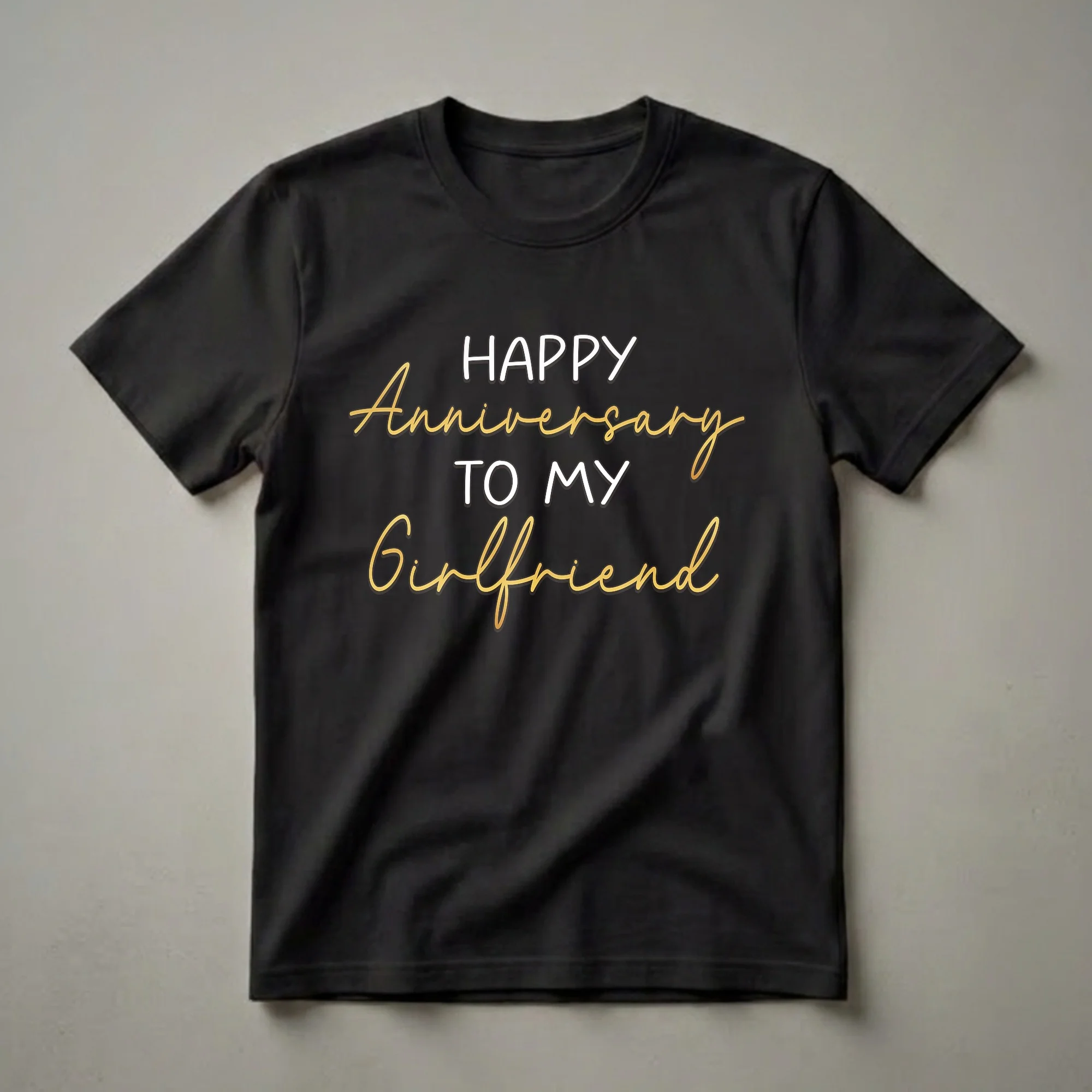 - "Happy Anniversary To My Girlfriend" graphic tee.