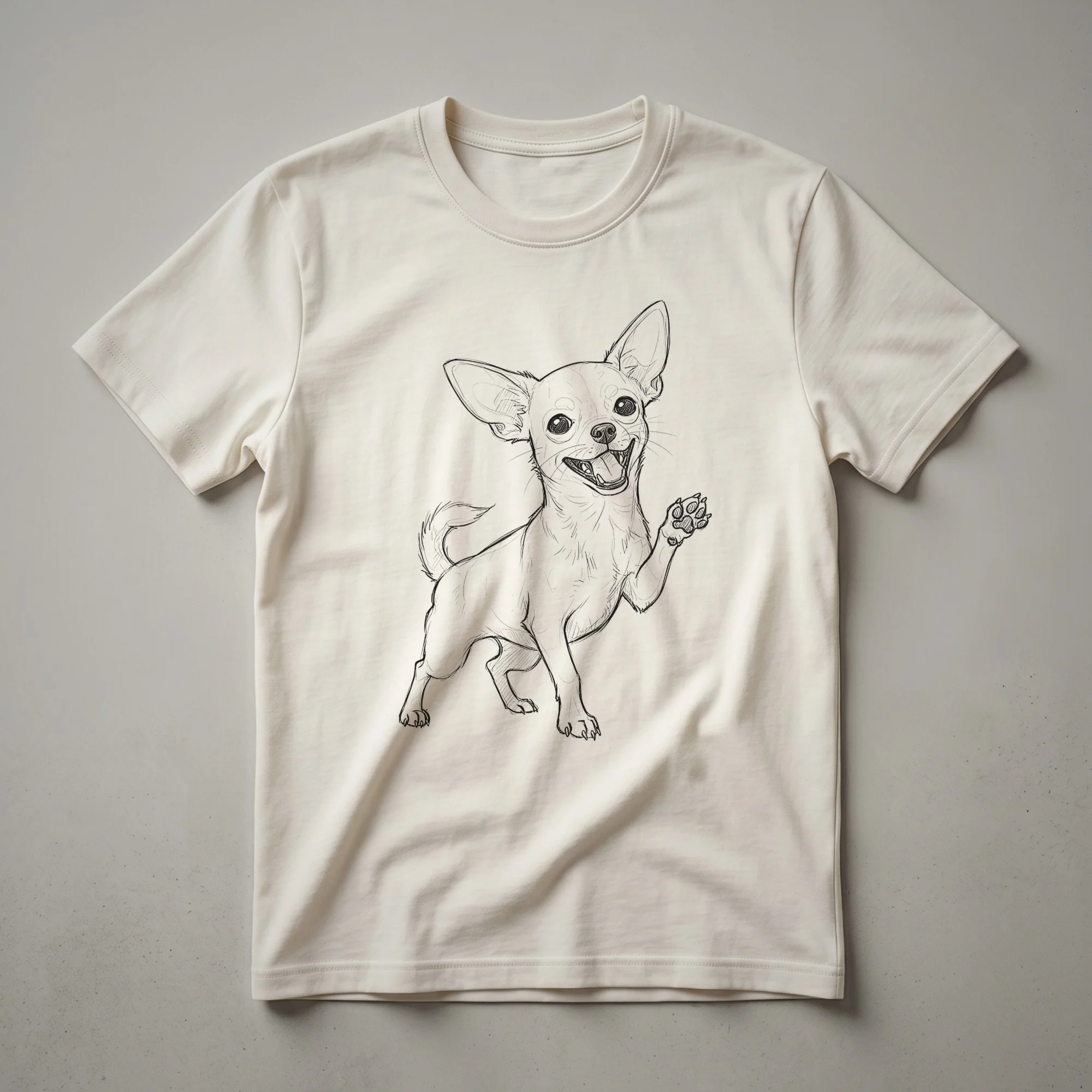 Dog enthusiasts will adore this cheerful tee featuring a cartoon Chihuahua sporting a lovely floral crown and a sweet paw print. This t-shirt captures that spirit with a cheerful cartoon Chihuahua adorned with a vibrant floral crown. Accompanying the dog is a subtle paw print graphic, symbolizing the bond between pet and owner. Chihuahuas, originating from Mexico, are known for their alert and spirited nature, often forming deep attachments with their human companions. This eye-catching tee is a wonderful way for any Chihuahua mom or dad to express their affection for their furry friend. It makes a thoughtful gift for birthdays, holidays, or just because. Wear this comfortable shirt to your next dog park visit, casual outing, or while relaxing at home with your beloved pet. It’s a go-to tee for anyone who cherishes their Chihuahua and wants to showcase that special connection. This apparel is a fantastic way to celebrate the joy these little dogs bring into our lives.