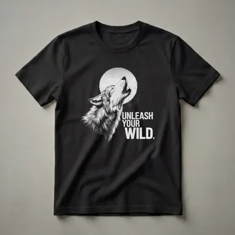Wolf lovers who appreciate the untamed spirit of these magnificent creatures will reach for this graphic tee. The design showcases a detailed, black and white illustration of a wolf, its head tilted back in a powerful howl towards a textured full moon. The stark contrast against the black background emphasizes the wild, primal energy of the scene. The text "UNLEASH YOUR WILD." is emblazoned in bold, distressed white lettering, reinforcing the theme of freedom and untamed nature. Wolves, known for their complex social structures and their vital role in maintaining ecosystem balance, are fascinating animals. This shirt is a thoughtful gift for anyone who feels a connection to the wilderness and the spirit of the wolf. It's a staple in the collection for hikers, campers, or anyone who simply admires the raw beauty of wildlife. Wear this tee on your next outdoor adventure or casual outing to express your connection to the wild.