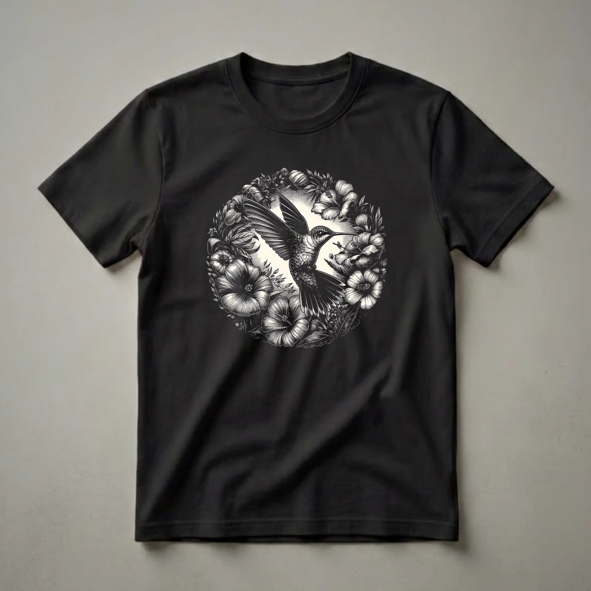 Hover to zoom · tap to expand Hummingbird and Hibiscus Floral Graphic T-Shirt for Nature Lovers