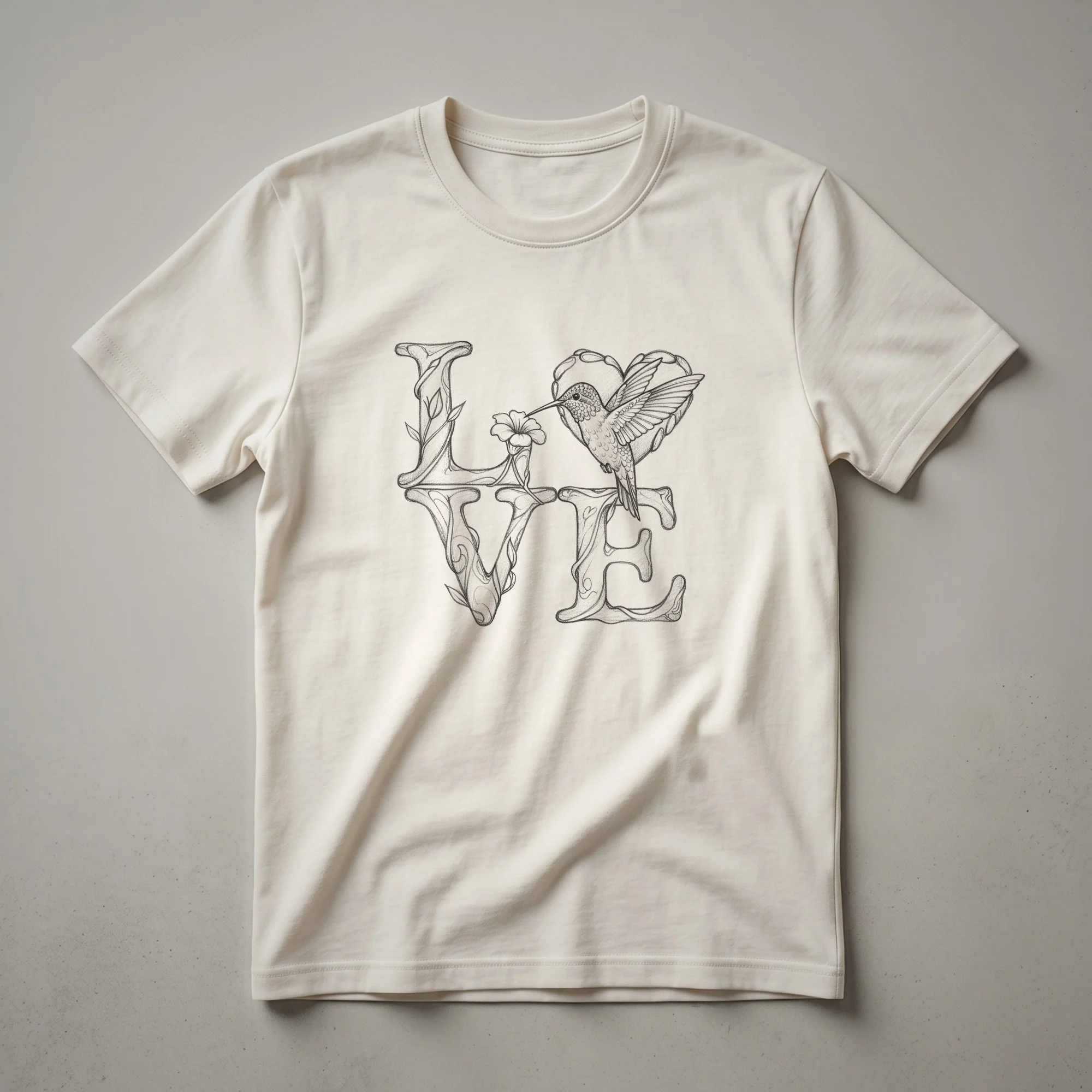 - Hummingbird heart graphic tee for wildlife lovers and bird enthusiasts.