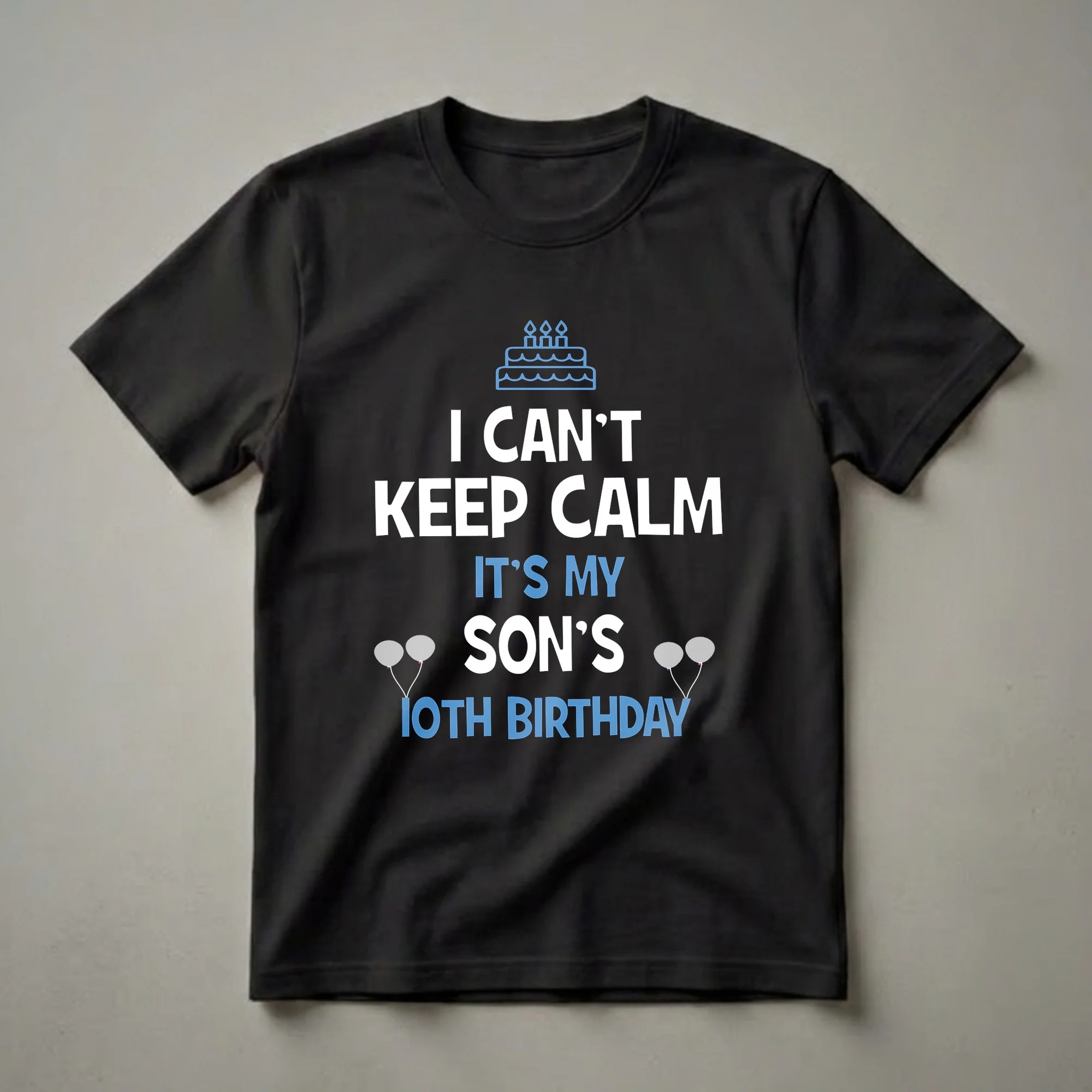 - Wear the I Can't Keep Calm It's My Son's 10th Birthday Graphic tee to birthday parties, dinners, or celebrations.