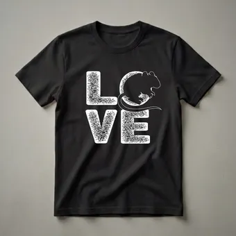 - Features a distressed 'LOVE' design with a gerbil silhouette.