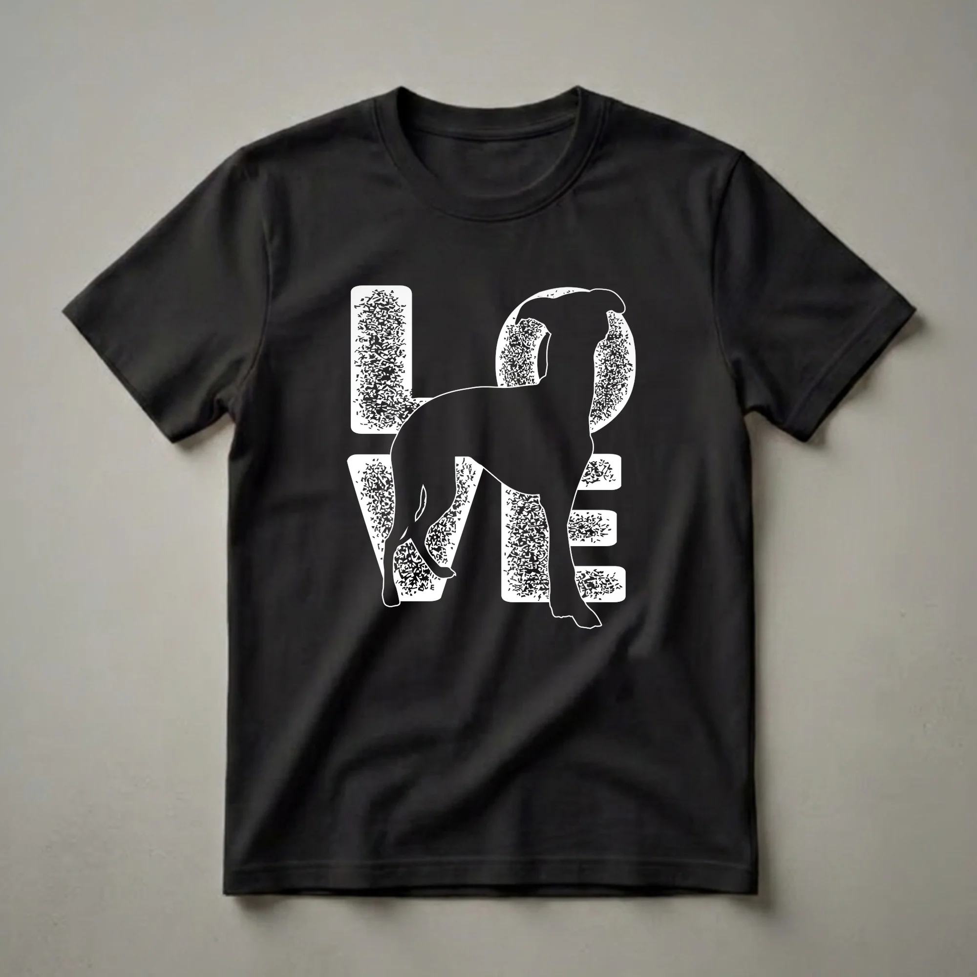 Whippet owners know the unique charm and gentle nature of these elegant sighthounds. This striking graphic tee captures that affection with a bold design featuring the word 'LOVE' creatively integrated with a silhouette of a Whippet. The letters themselves are filled with a distressed, textured pattern, adding a touch of artistic flair to the overall look. The Whippet, known for its speed and graceful build, is depicted standing proudly, its sleek form outlined in white against the dark background of the shirt. These dogs, originating from England, are renowned for their speed and are often described as 'couch potatoes' when not in motion, a testament to their adaptable personalities. This shirt is a fantastic way for any Whippet mom or dad to express their bond with their canine companion. It makes a thoughtful gift for birthdays, holidays, or just because for the Whippet enthusiast in your life. Wear this tee to your next dog park visit or casual outing to spark conversations with fellow dog lovers.