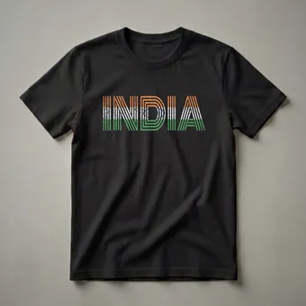 Celebrate your Indian heritage with this vintage-inspired graphic tee, featuring the word INDIA in distressed national flag colors. The word "INDIA" is emblazoned across the chest in a bold, retro font, with each letter intricately filled with the iconic saffron, white, and green stripes of the Indian national flag. The Ashoka Chakra, a symbol of dharma and law, is prominently featured within the letter 'D', adding a layer of cultural significance. This design evokes a sense of vintage charm, with a distressed texture that suggests a well-loved garment. It's a staple for any Indian expatriate, someone celebrating Indian Independence Day, or anyone who wishes to display their connection to the subcontinent. This shirt works well for casual outings, family gatherings, or as a thoughtful gift for a friend or family member who cherishes their Indian roots. Wear it to express your identity and celebrate the rich tapestry of Indian culture.