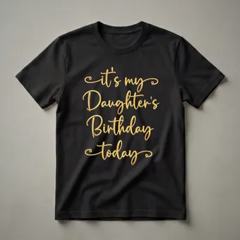 Proud parents and family members can now visually share in the joy of their daughter's birthday with this eye-catching graphic tee. The design features elegant, flowing gold script that clearly states 'it's my Daughter's Birthday today'. This shirt is a wonderful way for moms, dads, or any proud family member to show their love and celebrate a milestone. Birthdays are significant markers, and this shirt allows you to participate in the celebration with a unified look. Imagine the photos from the birthday party or family gathering, with everyone wearing their matching shirts, highlighting the special bond. This tee works well for any birthday celebration, from a child's first birthday to a young adult's coming-of-age event. It makes a thoughtful gift for any parent who wants to express their pride on their daughter's big day. Wear it to the birthday party, a family brunch, or any event where you want to proudly announce whose special day it is. This shirt is a staple for any family celebrating a daughter's birthday.