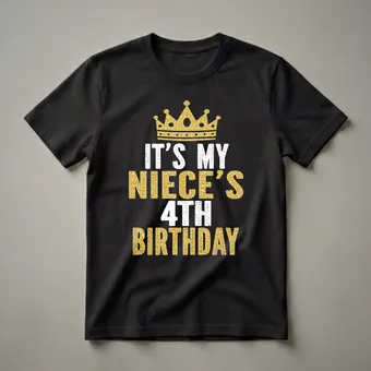 - Features a gold crown and distressed text announcing 'IT'S MY NIECE'S 4TH BIRTHDAY'.