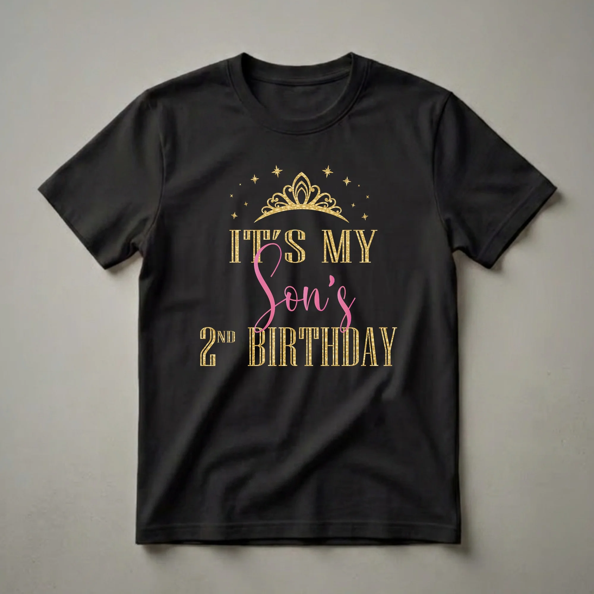 - "It's My Son's 2nd Birthday" graphic tee for proud parents.
