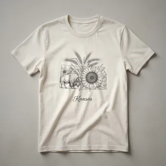 Kansans who appreciate the Sunflower State's rich heritage will reach for this unique graphic tee. The design artfully blends iconic symbols of Kansas: a majestic bison, representing the plains' history, stands beside vibrant sunflowers, the state flower, and stalks of wheat, symbolizing its agricultural bounty. The entire scene is artfully contained within the recognizable outline of the Kansas state map. This t-shirt is more than just apparel; it's a wearable tribute to the heartland. Kansas, often called the 'Wheat State,' is a leading producer of wheat in the United States, with its vast plains well suited for agriculture. The bison, once roaming in massive herds across the prairies, is a powerful symbol of the American West and its enduring spirit. This shirt works well for anyone who calls Kansas home, whether they live in Wichita, Kansas City, or the open country. It makes a thoughtful gift for a proud Kansan, a returning traveler, or someone celebrating their roots in the central plains. Wear it to local festivals, casual outings, or while exploring the beauty of the state.