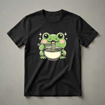 Hover to zoom · tap to expand Kawaii Frog Eating Ramen Graphic T-Shirt for Foodie Fun