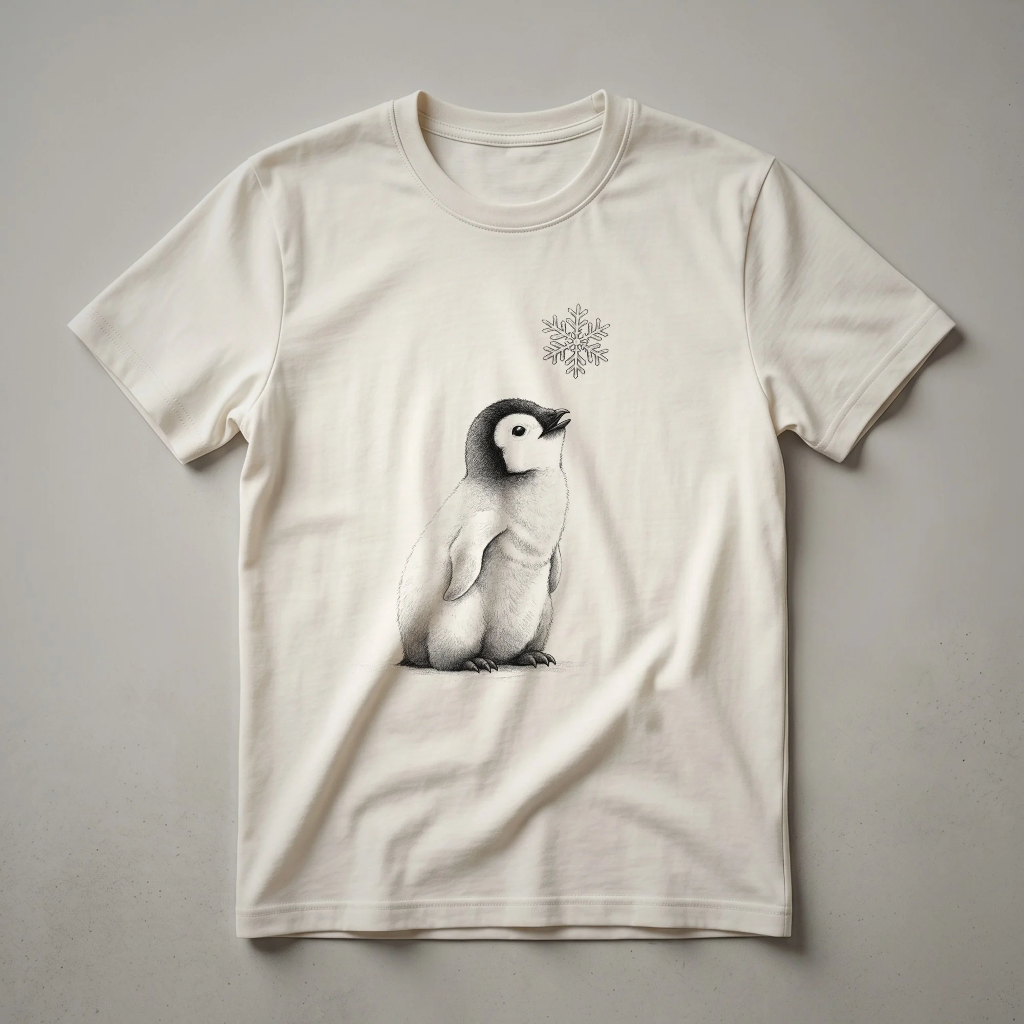 Children who love the winter season will adore this charming Christmas t-shirt featuring a playful penguin. The design showcases a friendly cartoon penguin sporting a red and white Santa hat, surrounded by a scattering of delicate snowflakes. This graphic tee is a delightful addition to any child's holiday wardrobe, bringing a touch of festive cheer to their everyday wear. Penguins, known for their distinctive black and white plumage and their habitat in cold climates, are a beloved symbol of winter and the holiday season. This shirt is a thoughtful gift for any child eager to celebrate Christmas and embrace the magic of winter. It's a go-to tee for holiday parties, family gatherings, or simply enjoying the festive spirit at home. Imagine your child wearing this cheerful shirt while decorating the Christmas tree or opening presents on Christmas morning. This t-shirt is designed to bring smiles and spread holiday joy throughout the season, making it a staple for any young one's festive apparel collection. It's a wonderful way for kids to express their excitement for Christmas and winter festivities.