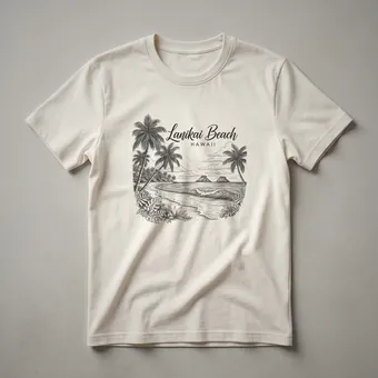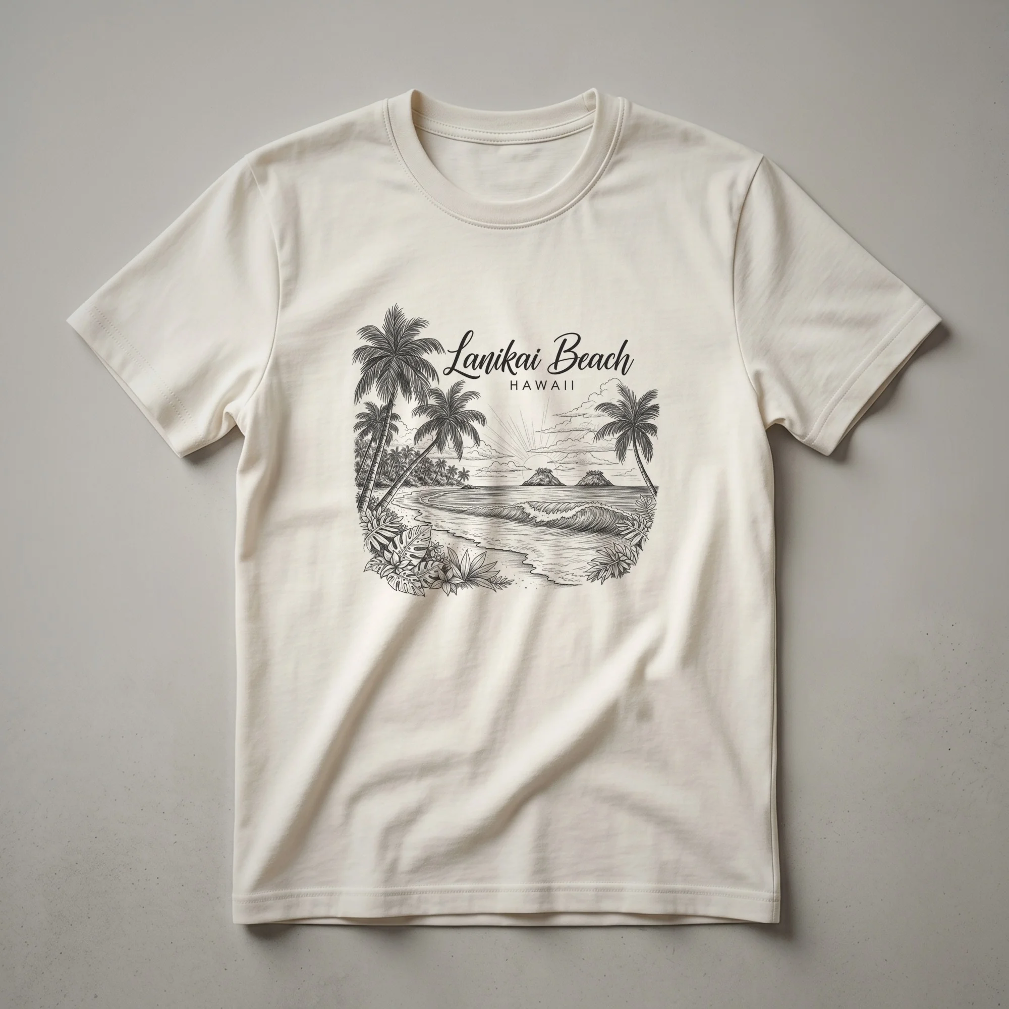 - Lanikai Beach sketch art t-shirt for Hawaii enthusiasts.