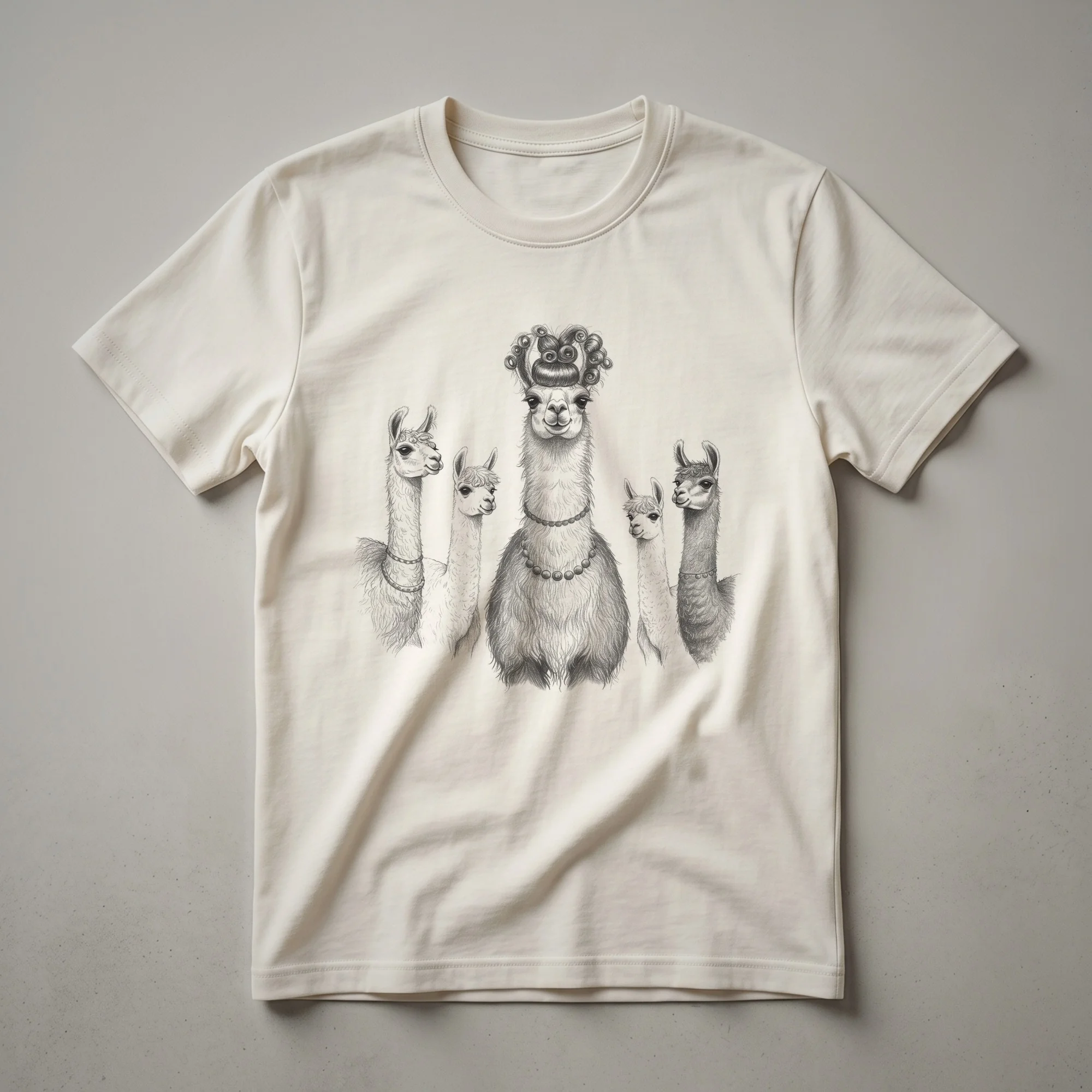 Llamas, known for their gentle nature and distinctive appearance, are the subject of this eye-catching graphic tee. The artwork features a stylized drawing of a llama's head, complete with a unique, almost artistic haircut that sets it apart. Llamas are native to the Andes Mountains of South America, where they have been domesticated for thousands of years, primarily for their wool and as pack animals. Their calm demeanor and curious expressions make them a popular subject for art and apparel. This t-shirt is a wonderful way for wildlife enthusiasts, hikers, or anyone who appreciates unique animal art to express their passion. It makes a thoughtful gift for friends or family who admire these fascinating creatures. Wear this comfortable shirt on your next outdoor adventure or casual outing to spark conversations about your favorite animals. The vintage drawing style adds a touch of timeless appeal, making this shirt a go-to piece for any nature lover's wardrobe. It's a staple for those who enjoy the charm of South American fauna.