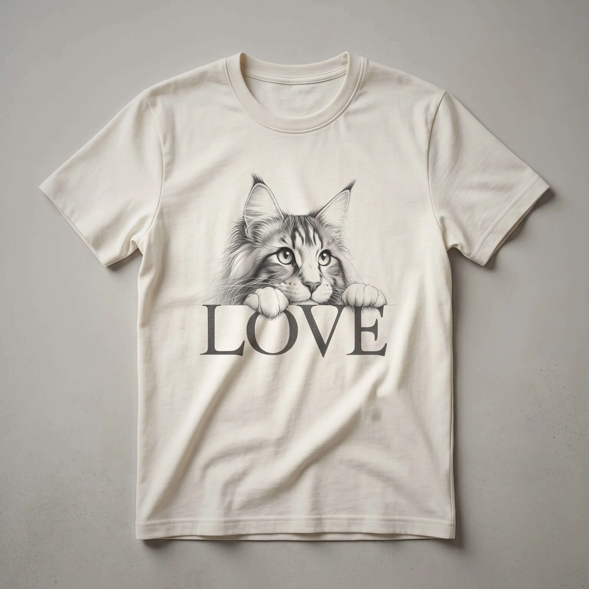Maine Coon cat moms and dads who want to showcase their affection for this magnificent breed will reach for this eye-catching t-shirt. The design features a stylized illustration of a Maine Coon cat's face, complete with its distinctive tufted ears and gentle expression, integrated with a heart symbol to represent love. Maine Coons are one of the largest domesticated cat breeds, known for their friendly, "dog-like" personalities and impressive size. This comfortable tee is a staple in the collection for anyone who cherishes these gentle giants. It makes a thoughtful gift for the cat lady in your life or for yourself. Wear this shirt to your next cat-themed event or simply while relaxing at home with your feline companion. This shirt is a wonderful way to express your admiration for this beloved breed.