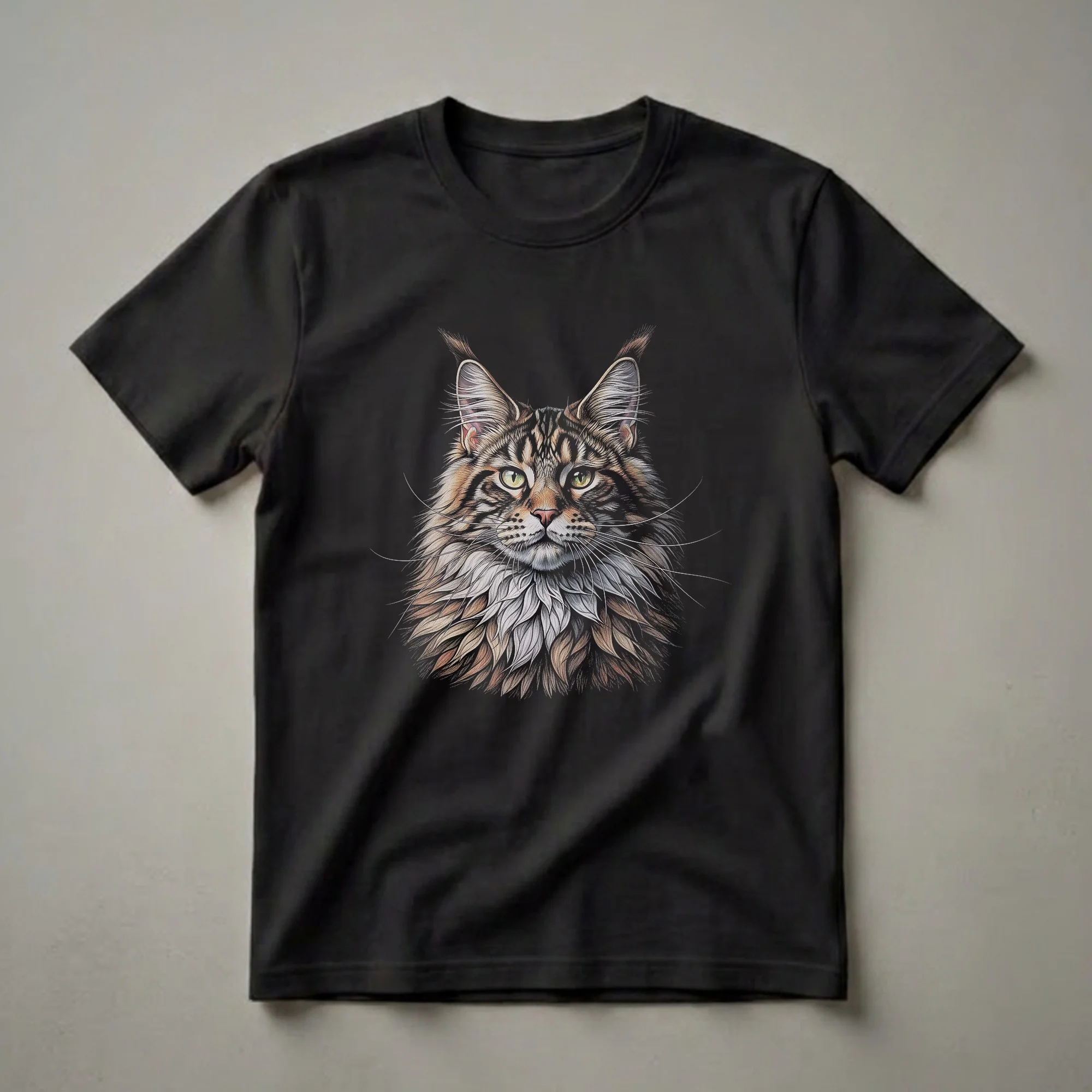 - Artistic Maine Coon cat portrait t-shirt for cat lovers.