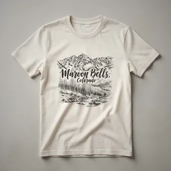 Colorado mountain lovers will reach for this striking graphic tee that captures the majestic beauty of the Maroon Bells. The design features a detailed sketch of the iconic peaks, set against a backdrop of dense pine trees and a rocky riverbed in the foreground. The words 'Maroon Bells, Colorado' are elegantly scripted across the scene, adding a touch of artistic flair. This shirt is a tribute to one of Colorado's most photographed and beloved natural landmarks, located in the Elk Mountains near Aspen. The Maroon Bells are known for their stunning reflection in Maroon Lake, especially during the autumn when the aspen trees turn golden. This tee is a perfect way for hikers, skiers, and anyone who appreciates the grandeur of the Rocky Mountains to express their connection to this breathtaking landscape. It makes a thoughtful gift for friends or family who have visited or dream of exploring the Colorado wilderness. Wear this shirt on your next outdoor adventure or casual outing to showcase your appreciation for the natural wonders of the American West.