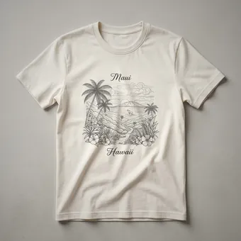 Maui, the Valley Isle, beckons with its stunning natural beauty, captured in this artistic sketch design. This t-shirt showcases a serene Hawaiian landscape, featuring iconic palm trees framing a view of lush, rolling hills leading to majestic mountains in the distance. The ocean stretches out, with a graceful whale breaching the surface, a testament to the rich marine life surrounding the islands. Tropical flowers and foliage adorn the foreground, adding to the vibrant island atmosphere. The word 'Maui' is elegantly scripted above the scene, with 'Hawaii' written below, grounding the design in its specific island identity. This graphic tee is a wonderful way for anyone who has visited or dreams of visiting Maui to carry a piece of paradise with them. It's a thoughtful gift for travelers who cherish their Hawaiian memories or for those who long to experience the aloha spirit firsthand. Wear this shirt to casual outings, beach days, or while reminiscing about your island adventures, bringing a touch of Hawaiian charm wherever you go. This apparel serves as a constant reminder of the breathtaking scenery and unique culture of Maui.