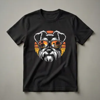 Miniature Schnauzer owners who appreciate a touch of cool will reach for this eye-catching graphic tee. The design features a stylized portrait of a Miniature Schnauzer, complete with its distinctive beard and eyebrows, sporting a pair of classic sunglasses. The lenses of these shades offer a vibrant reflection of a tropical beach scene at sunset, complete with palm trees and a radiant sun dipping below the horizon. This imagery evokes a sense of vacation vibes and laid-back relaxation, a perfect mood for any dog parent. Miniature Schnauzers, known for their spirited personalities and alert nature, make for loyal companions. This shirt is a thoughtful gift for any Miniature Schnauzer mom or dad who enjoys a bit of humor and style. Wear this t-shirt to casual outings, dog park visits, or simply while relaxing at home, showcasing your affection for your furry friend with a unique and memorable design. It's a staple in the collection for any dog enthusiast.
