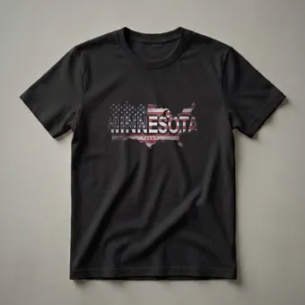Minnesotans can now wear their state pride with this striking graphic tee. The design prominently features the outline of Minnesota, filled with the iconic stars and stripes of the American flag. Overlaid on this patriotic backdrop is the word "MINNESOTA" in a bold, distressed metallic font, adding a vintage yet modern feel. This shirt is a fantastic way for residents and former residents to celebrate their connection to the "Land of 10,000 Lakes." Minnesota is known for its abundant natural beauty, including its numerous lakes and forests, as well as its vibrant cities like Minneapolis and Saint Paul. This t-shirt works well for anyone who cherishes their roots or has fond memories of the state. It makes a thoughtful gift for a Minnesotan who loves to showcase their state identity. Wear this tee to local festivals, family gatherings, or simply as a daily expression of your Minnesota spirit. It's a staple in the collection for any proud Minnesotan.