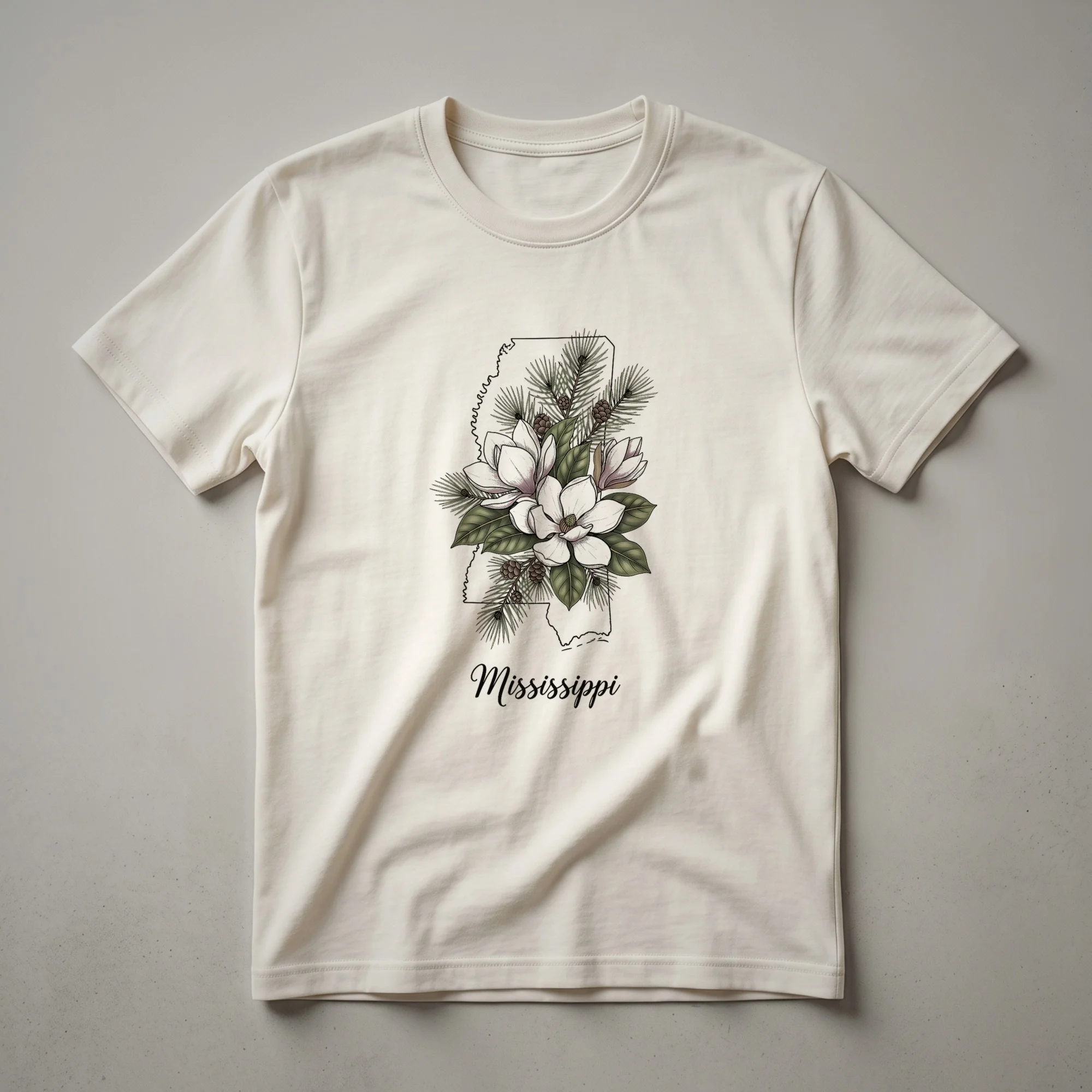 Hover to zoom · tap to expand Mississippi Magnolia and Pine Sketch Graphic T-Shirt for State Pride